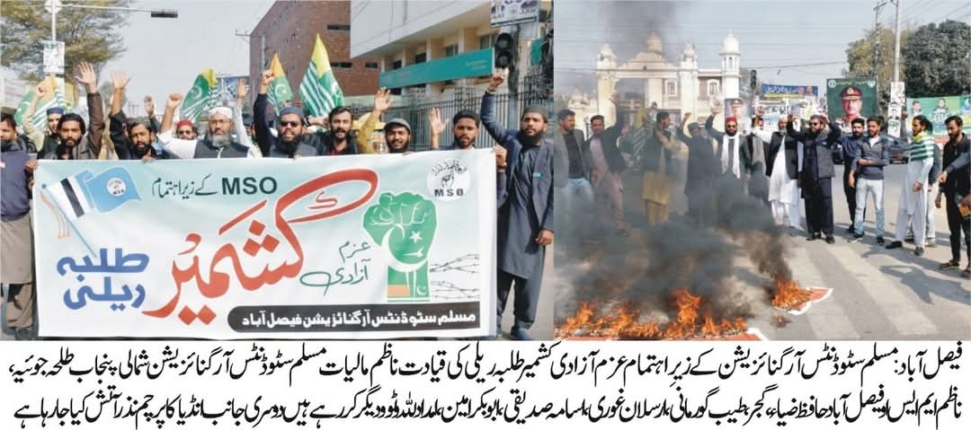 فیصل آبادعزم آزادی کشمیر طلبہ ریلی کا انعقاد