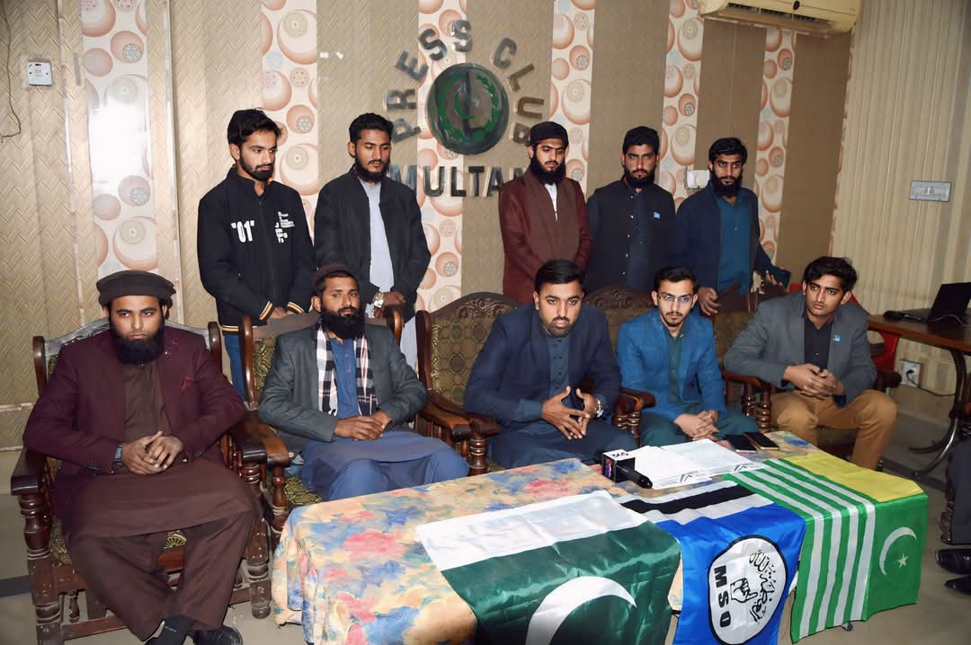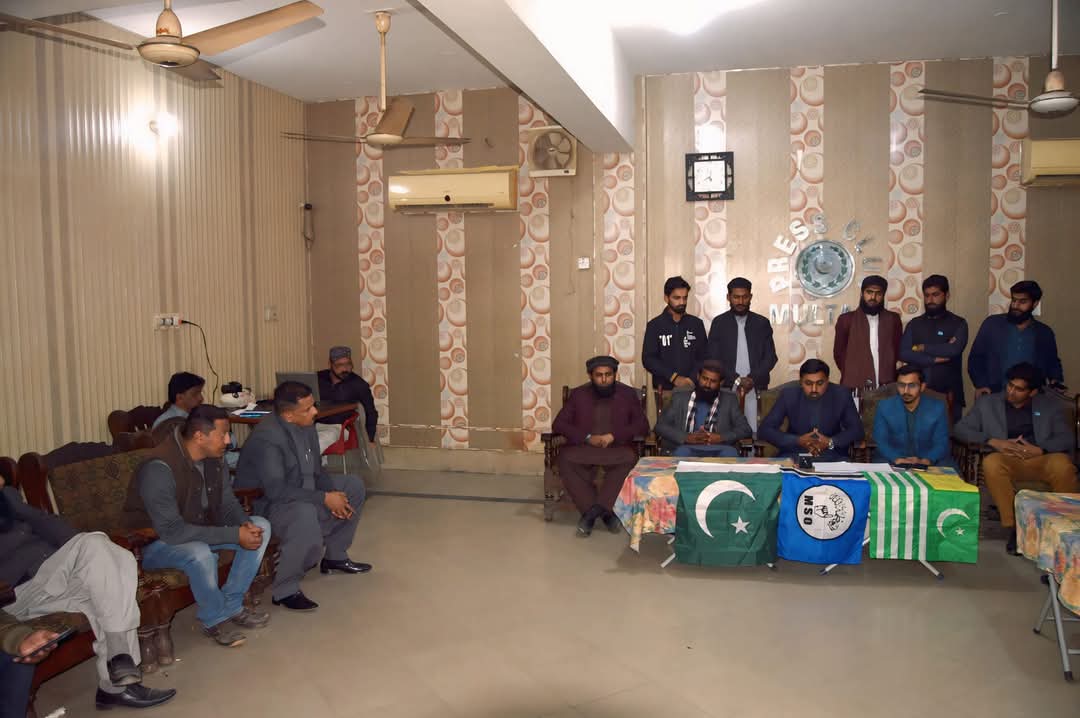 ملتان کشمیر ڈے کے موقع پر ناظم MSO ساؤتھ پنجاب برادر حیدر معاویہ پریس کلب ملتان میں پریس کر رہے ہیں۔