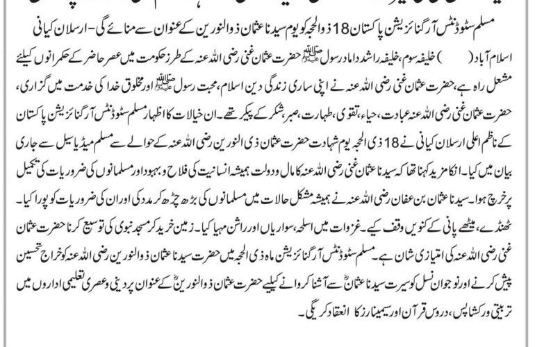 The life and character of Syedna Usman Ghani (RA) stand as a guiding light for future generations.
